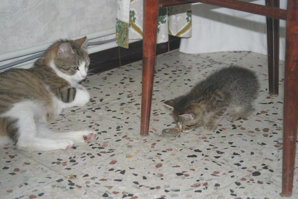 Regardez ce que je vous ait trouv� :) Tiens, entraines toi ! Je l'ai eu ! Je veux jouer aussi ! Mais il est vivant ? Oups! il m' �chapp�, la m�re se demande bien comment il va s'en sortir Maman ? �a sait nager un l�zard ? ... ... bon, laisse, je vais aller � la p�che ... Bon, et bien c'est fini, Avrel a russi � noyer le l�zard ... Autre tentative, cette fois plus glorieuse semaine 05, premieres sortiesJe pars a l'aventure
