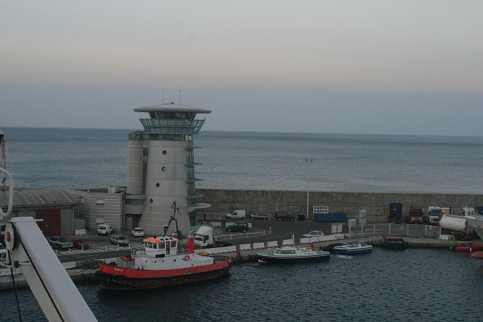 Photo prise depuis la voiture Tour de Contr�le du port de Bastia Corsica Ferries qui nous pr�c�de Vedette qui vient r�cup�rer le pilote du port Bastia depuis le bateau Bastia depuis le bateau 06_20 Cascade des anglais