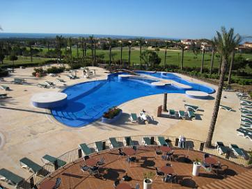 Vue sur la piscine depuis l'appartement (Drago 210) La piscine du Pierre & Vacances de nuit Port Aventura